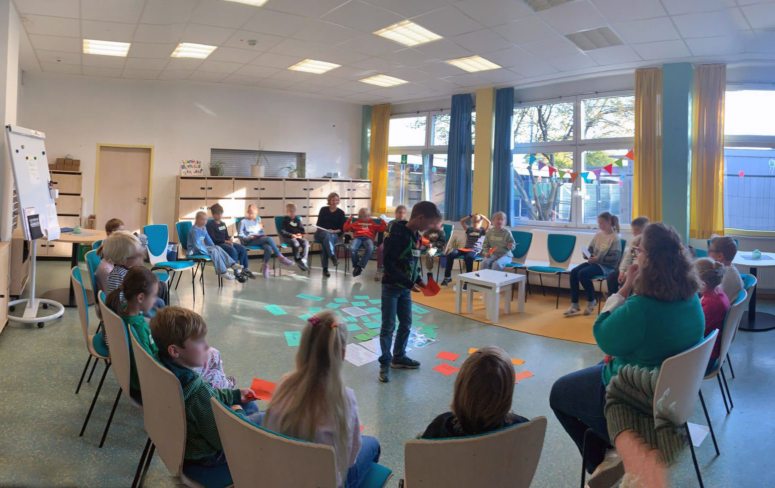 Am 19.9.2025 tagte, ganz offiziell, das erste Kinderparlament unserer Schule. Alle Klassen hatten sich in den Tagen zuvor in den jeweiligen Klassenräten ausgetauscht und schickten dann je zwei Vertretungen in unser Kinderparlament.