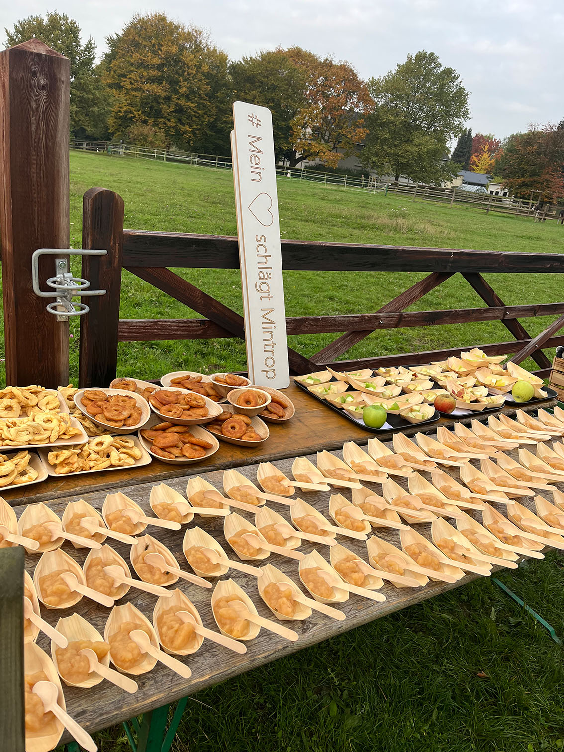 Am letzten Tag vor den Herbstferien wurde der Ausflug unserer Klassen 2c und 2d zum Mintrops Land Hotel zu einem ganz besonderen Erlebnis. Unsere Kinder beschäftigten sich mit vielen Dingen zum Thema Apfel – vom Anbau bis zur Verarbeitung. Dabei gab es viel zu entdecken, zum Beispiel, welche verschiedenen Apfelsorten es gibt und wie sie in der Küche vielseitig verwendet werden können. Natürlich durfte auch fleißig selbst probiert werden: Es gab köstliche Apfelgerichte und frische Säfte, die sehr lecker schmeckten.
